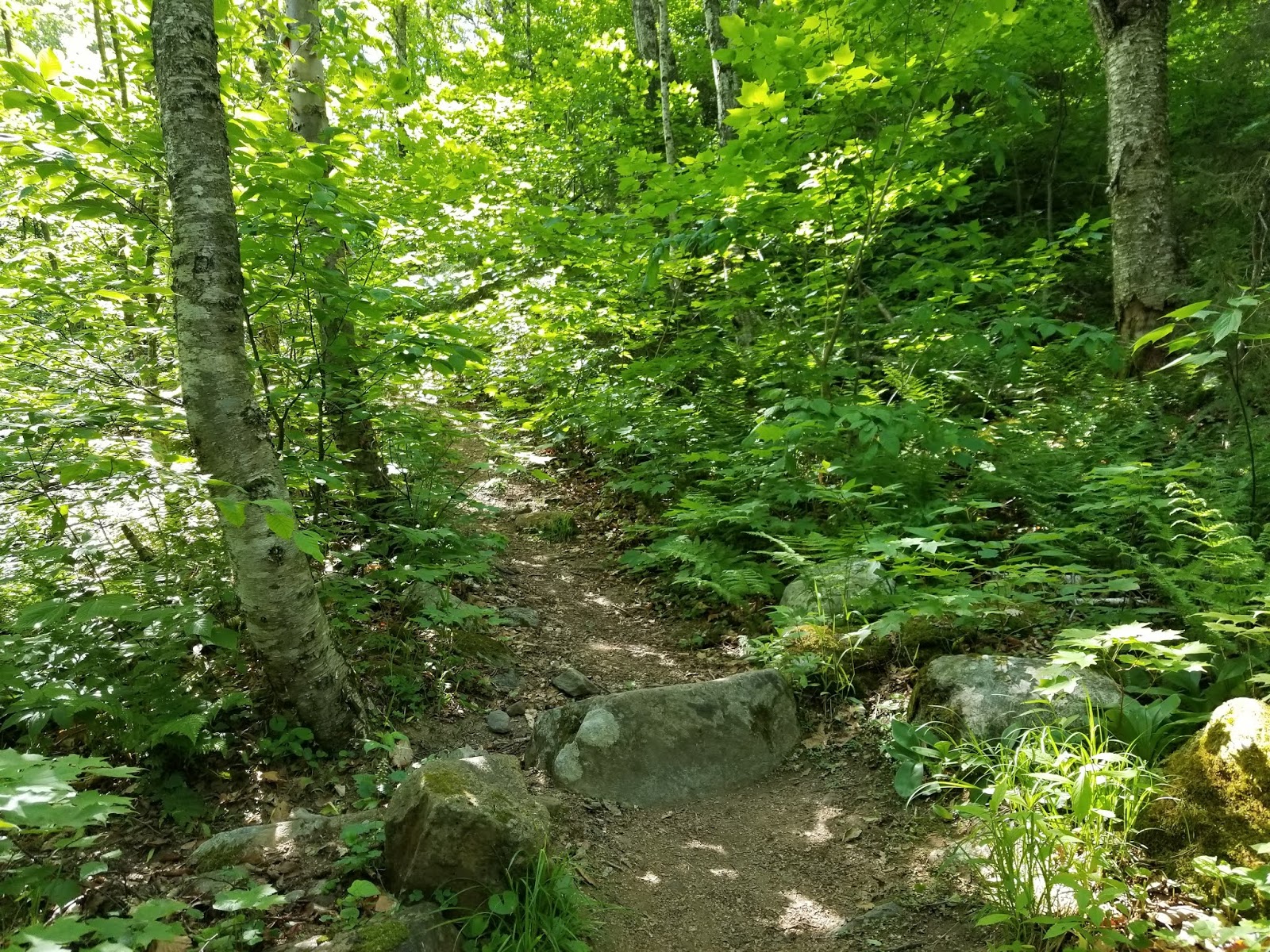 1. Lower Bucklin Trail: 2.3 miles and over half of the distance is basically a "walk in the woods" rated as moderate by the Green Mountain Club. This is generally a hike along Brewers Brook on an old woods road, crossing a couple of times on bridges. There are a few ups and downs, but net elevation gain along this stretch is less than 500 feet.